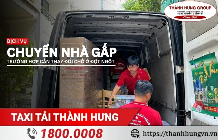 Dịch vụ chuyển nhà gấp của Taxi Tải Thành Hưng ra đời giúp khách hàng giải quyết nhanh chóng, an toàn và hiệu quả mọi công đoạn chuyển dọn đến tổ ấm mới.