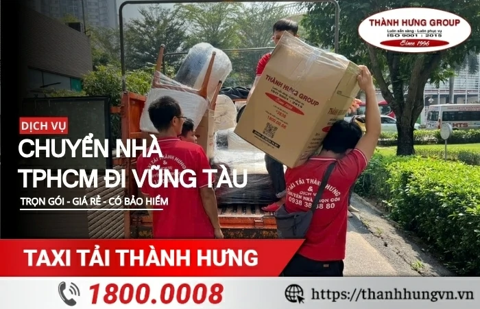 Thành Hưng cung cấp dịch vụ chuyển nhà TPHCM đi Vũng Tàu chuyên nghiệp, phục vụ 24/7 và cam kết bảo hiểm đồ đạc. Liên hệ ngay tổng đài miễn cước 1800 00 08 để được tư vấn chi tiết.